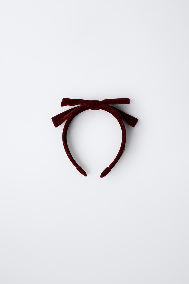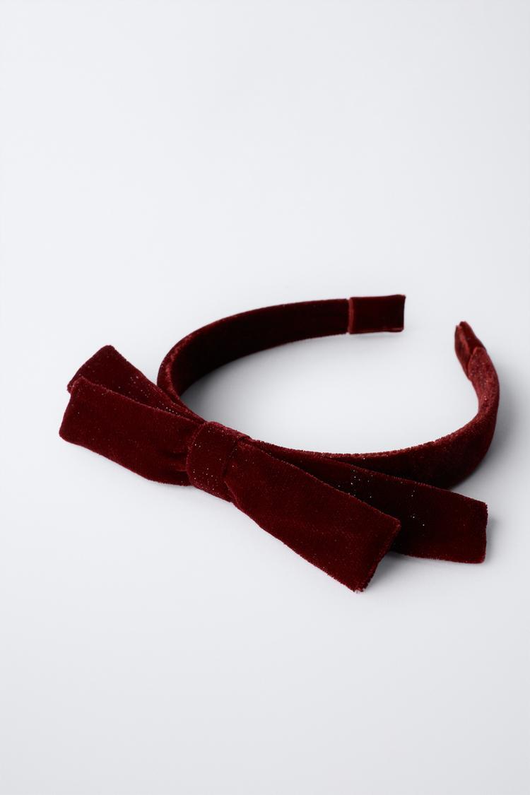 ZARA БАРХАТНЫЙ ОБОДОК С БАНТОМ И БЛЕСТКАМИ, ГРАНАТОВЫЙ