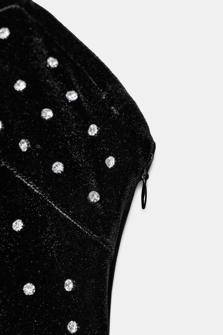 ZARA БАРХАТНЫЙ ТОП С БЛЕСТКАМИ, ЧЕРНЫЙ