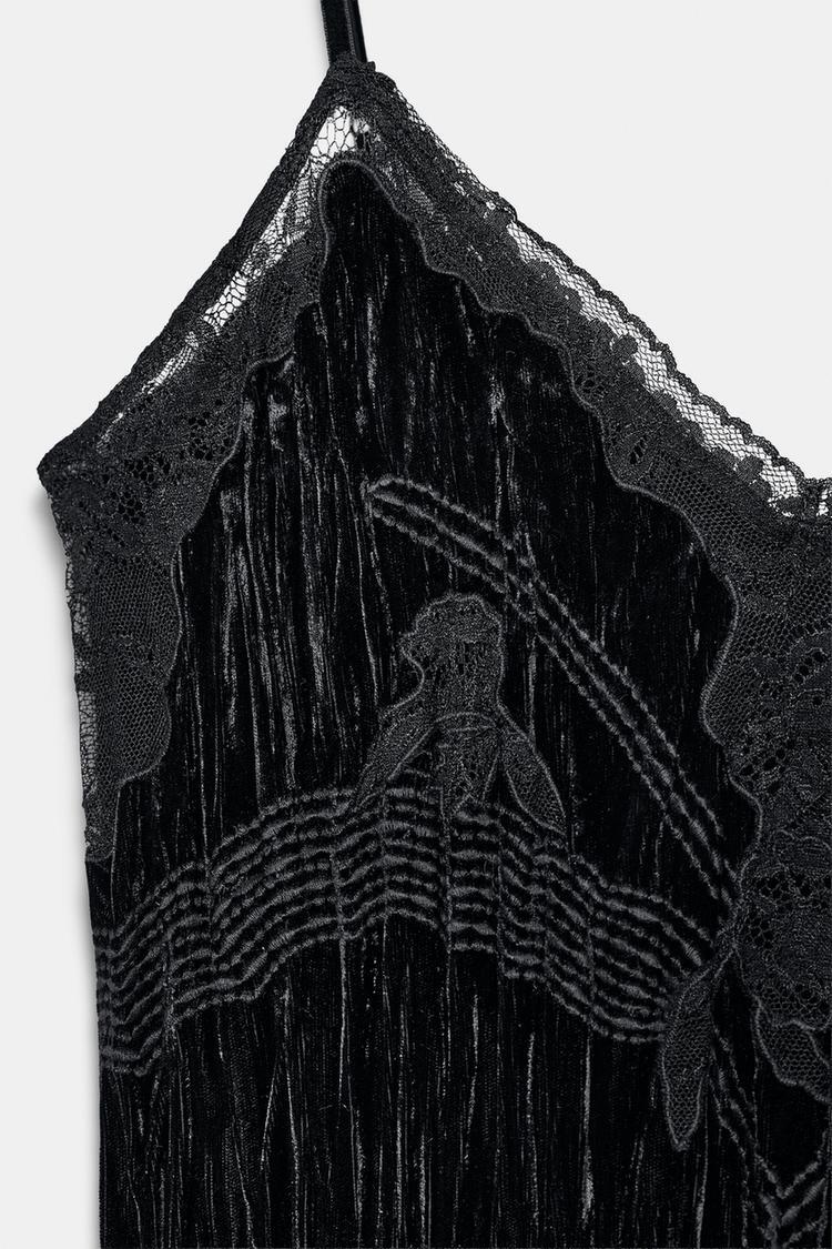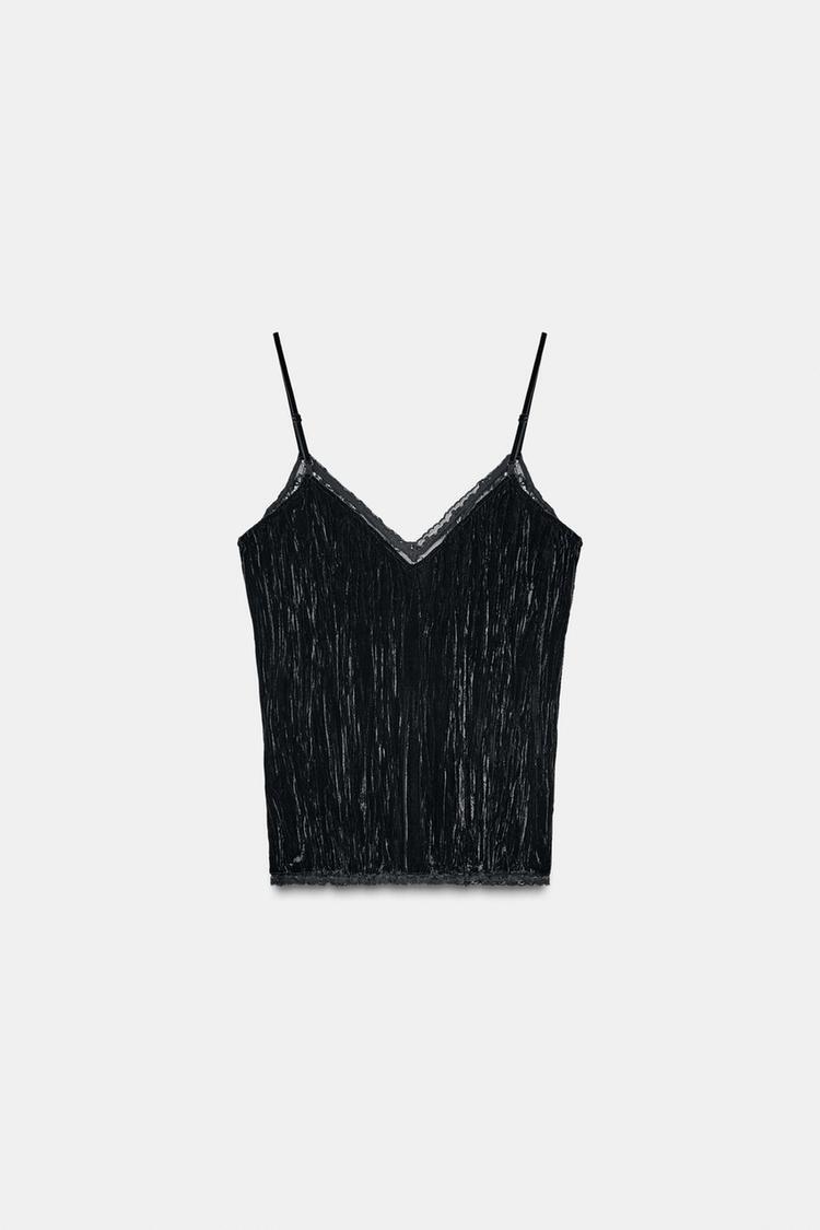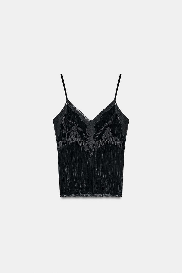 ZARA БАРХАТНЫЙ ТОП С КРУЖЕВОМ — ZW COLLECTION, ЧЕРНЫЙ