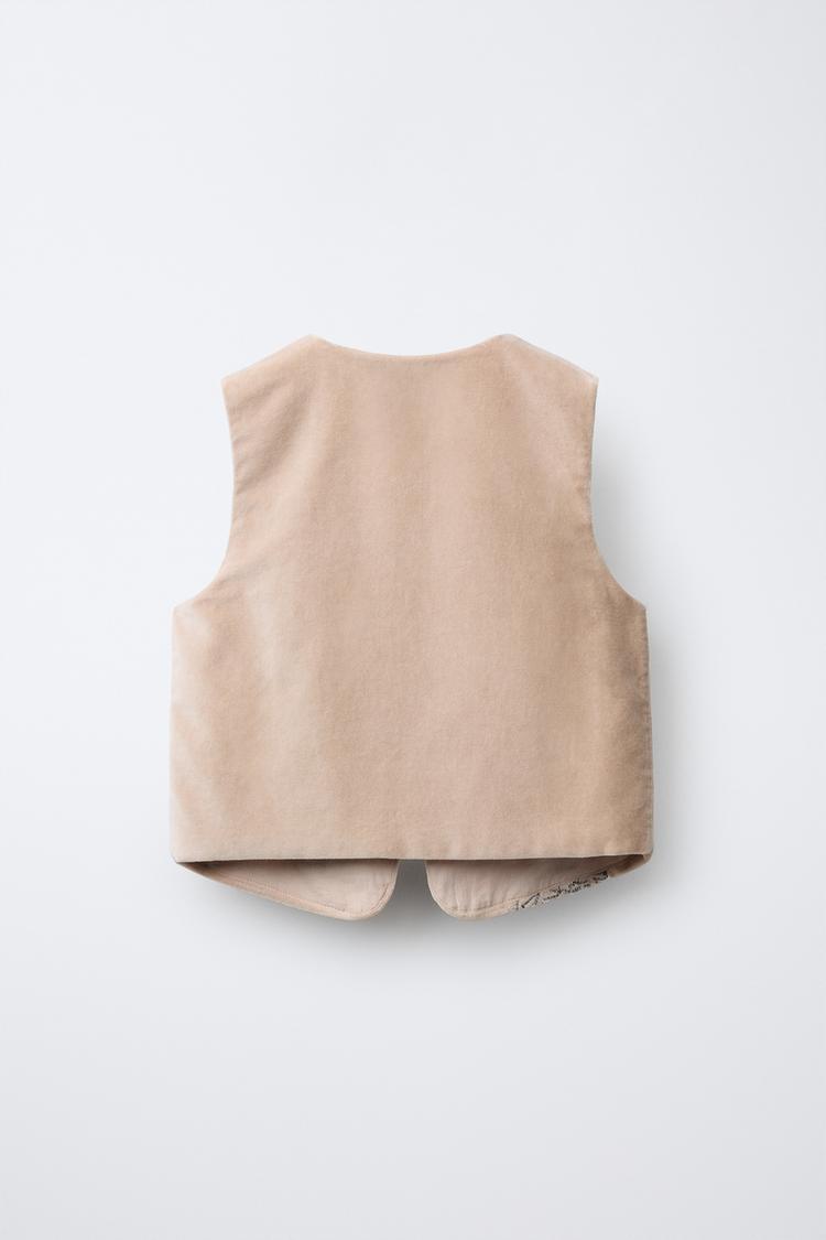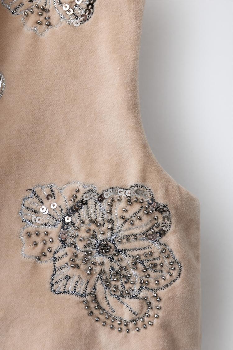 ZARA БАРХАТНЫЙ ЖИЛЕТ С ВЫШИТЫМИ ЦВЕТАМИ И ПАЙЕТКАМИ, ТЕЛЕСНО-РОЗОВЫЙ