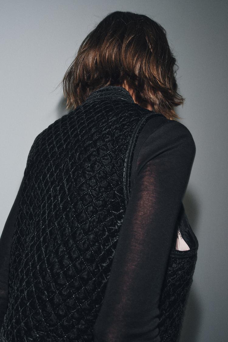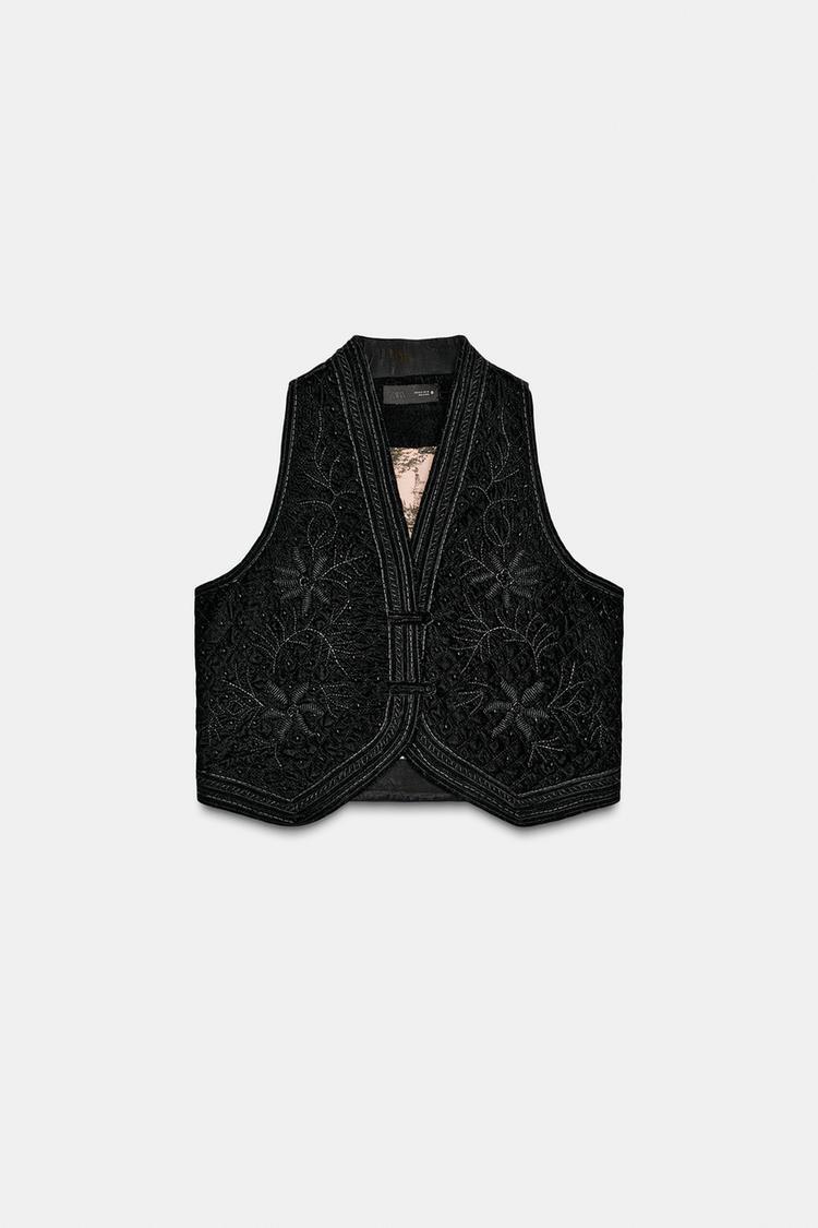 ZARA БАРХАТНЫЙ ЖИЛЕТ С ВЫШИВКОЙ ZW COLLECTION LIMITED EDITION, ЧЕРНЫЙ