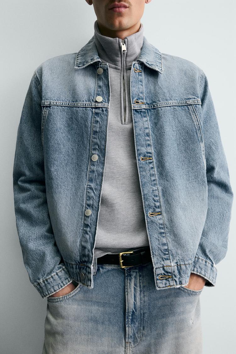 ZARA БАЗОВАЯ ДЖИНСОВАЯ КУРТКА, ВЫЦВЕТШИЙ СИНИЙ