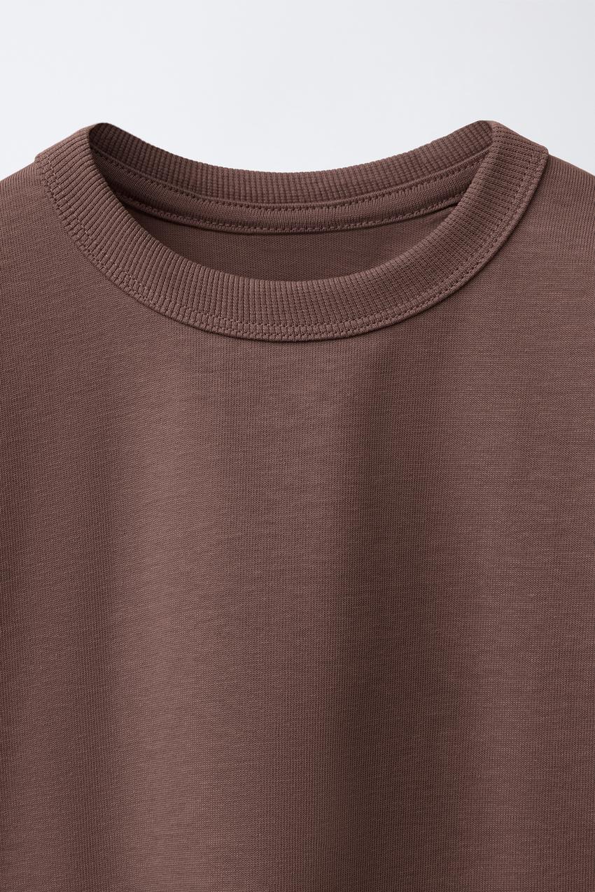 ZARA БАЗОВАЯ ФУТБОЛКА HEAVY WEIGHT, ПУДРОВЫЙ