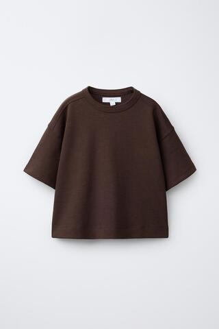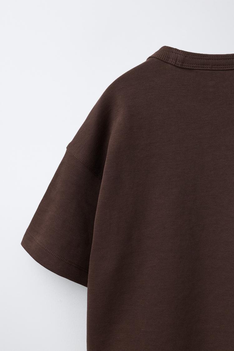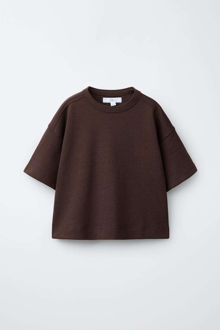 ZARA БАЗОВАЯ ФУТБОЛКА ИЗ ИНТЕРЛОКА, КОРИЧНЕВЫЙ
