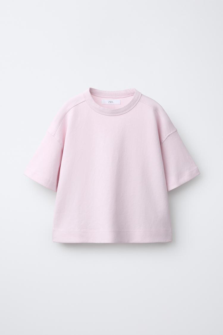 ZARA БАЗОВАЯ ФУТБОЛКА ИЗ ИНТЕРЛОКА, РОЗОВЫЙ