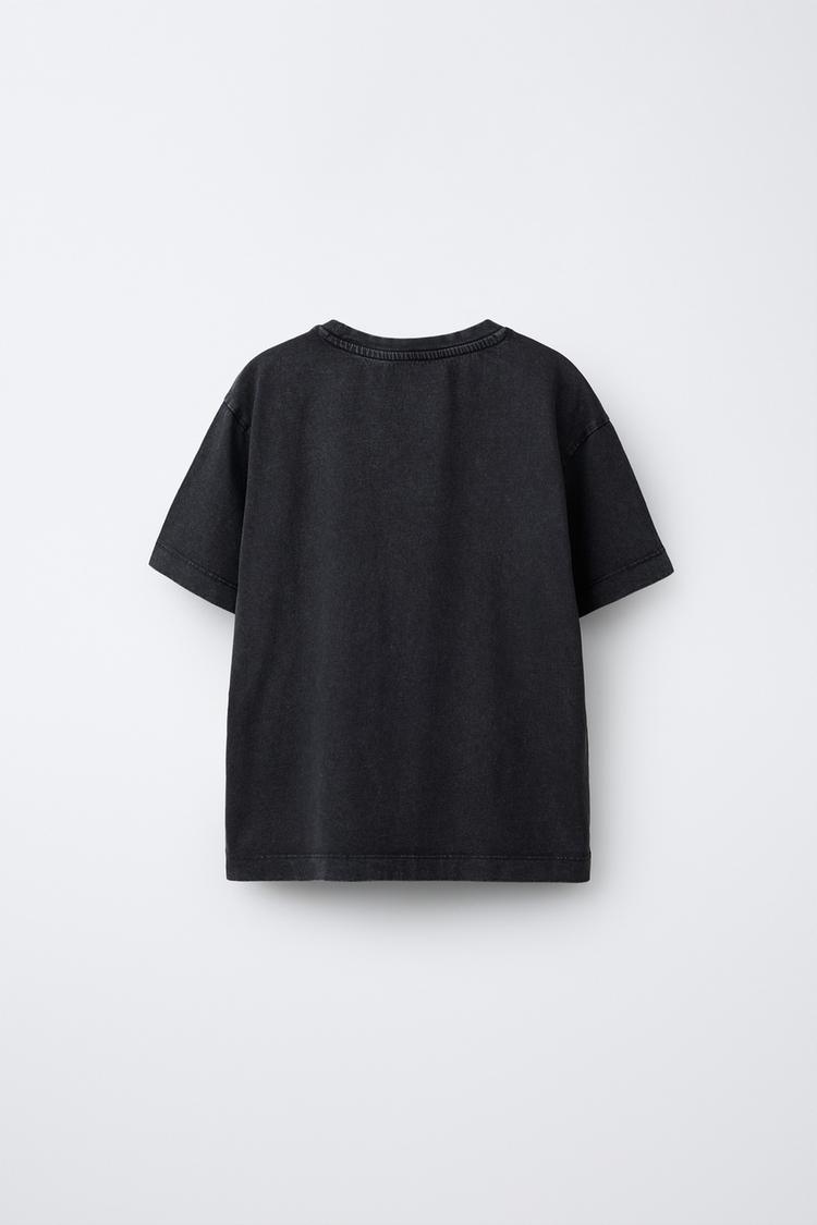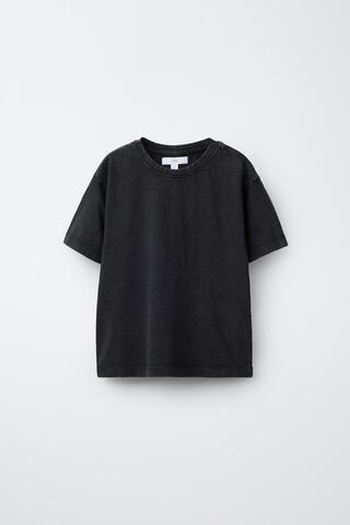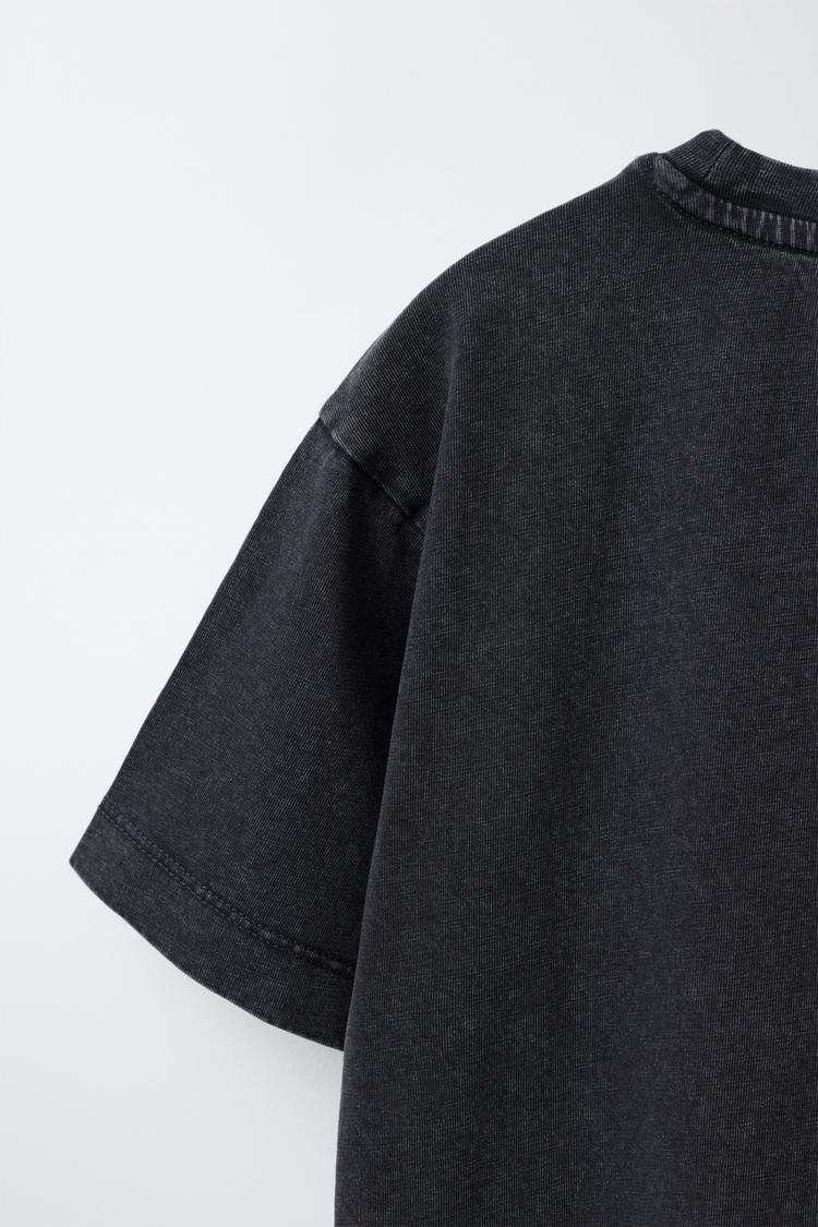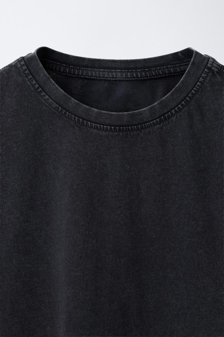 ZARA БАЗОВАЯ ФУТБОЛКА ИЗ ТКАНИ С ЭФФЕКТОМ ПОТЕРТОСТИ, АНТРАЦИТОВО-СЕРЫЙ