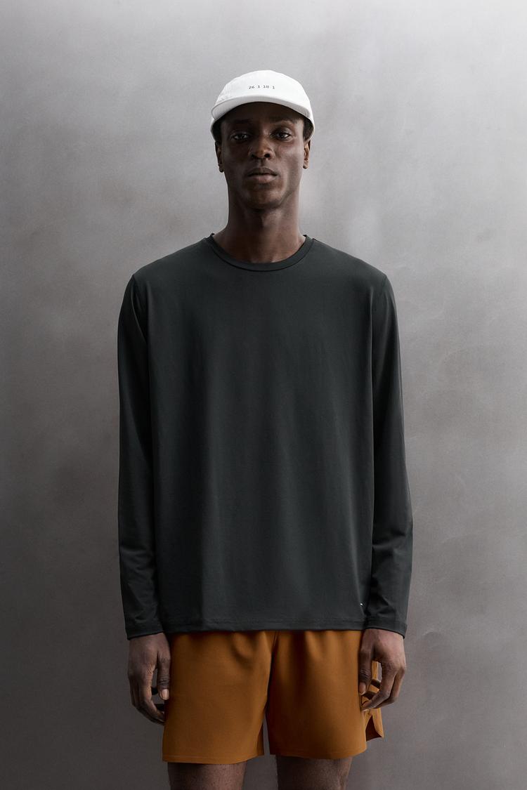 ZARA БАЗОВАЯ ФУТБОЛКА С ДЛИННЫМИ РУКАВАМИ, ЧЕРНЫЙ