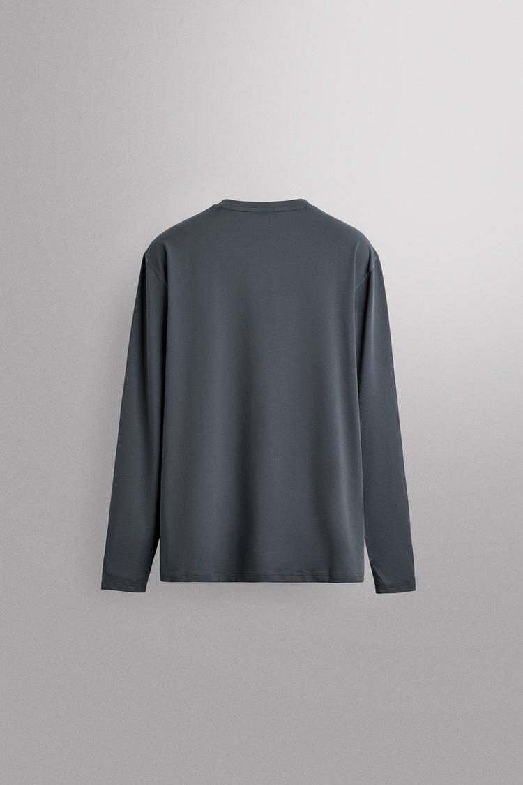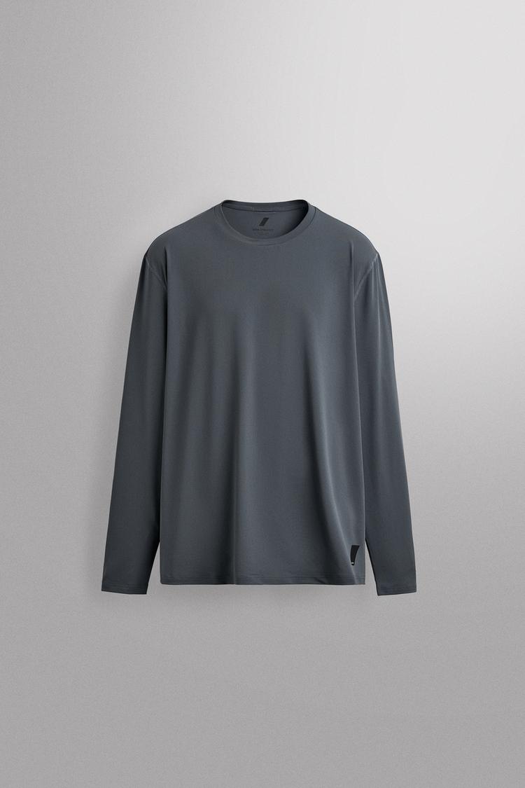 ZARA БАЗОВАЯ ФУТБОЛКА С ДЛИННЫМИ РУКАВАМИ, СТАЛЬНОЙ СИНИЙ