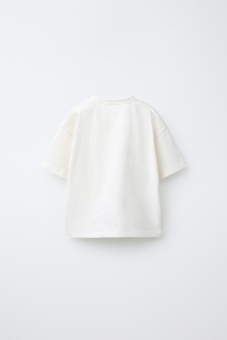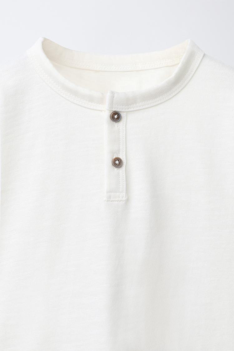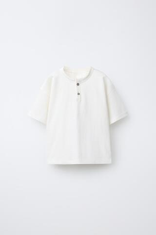 ZARA БАЗОВАЯ ФУТБОЛКА С ПУГОВИЦАМИ, ЭКРЮ