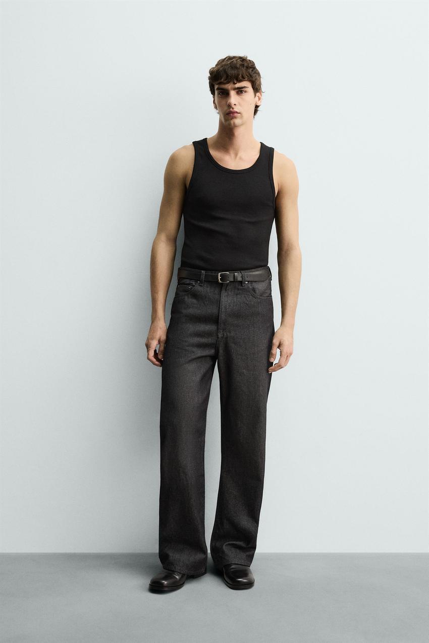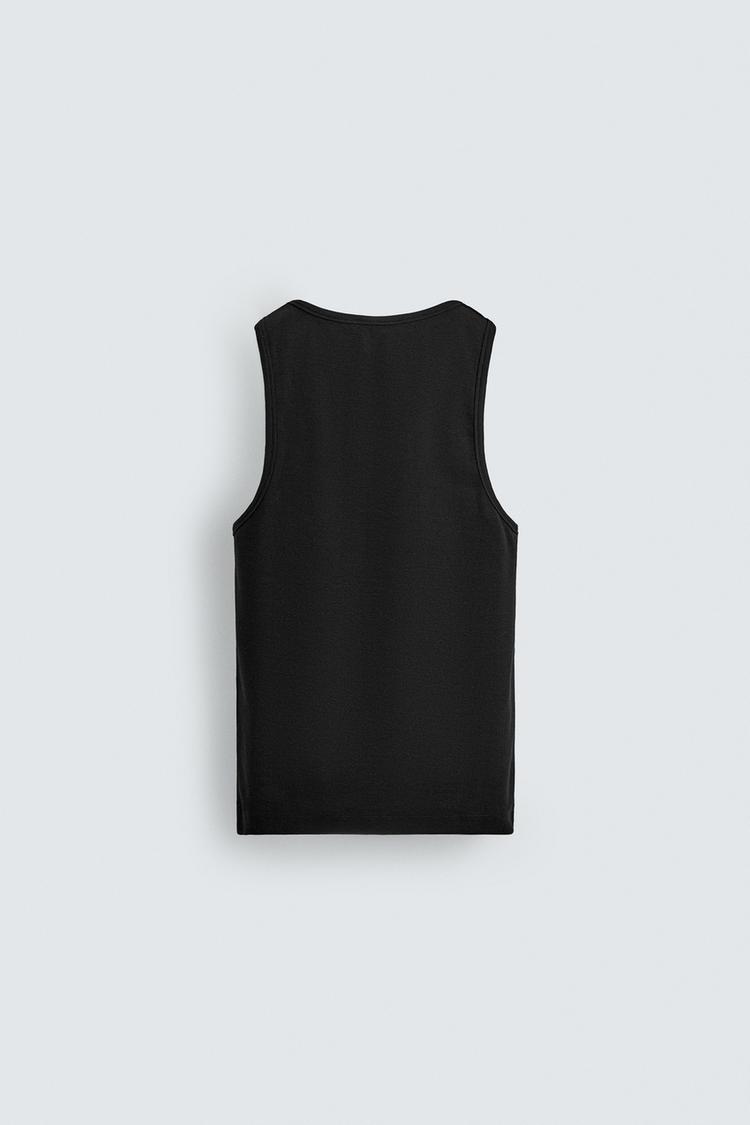 ZARA БАЗОВАЯ МАЙКА В РУБЧИК, ЧЕРНЫЙ