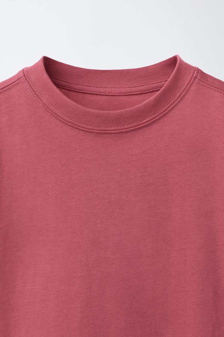 ZARA БАЗОВАЯ ОДНОТОННАЯ ФУТБОЛКА, МАЛИНОВЫЙ
