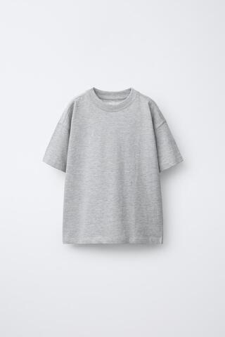 ZARA БАЗОВАЯ ОДНОТОННАЯ ФУТБОЛКА, СЕРЫЙ МЕЛАНЖ