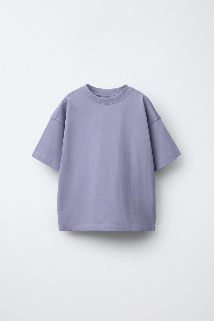 ZARA БАЗОВАЯ ОДНОТОННАЯ ФУТБОЛКА, ТЕМНАЯ МАЛЬВА