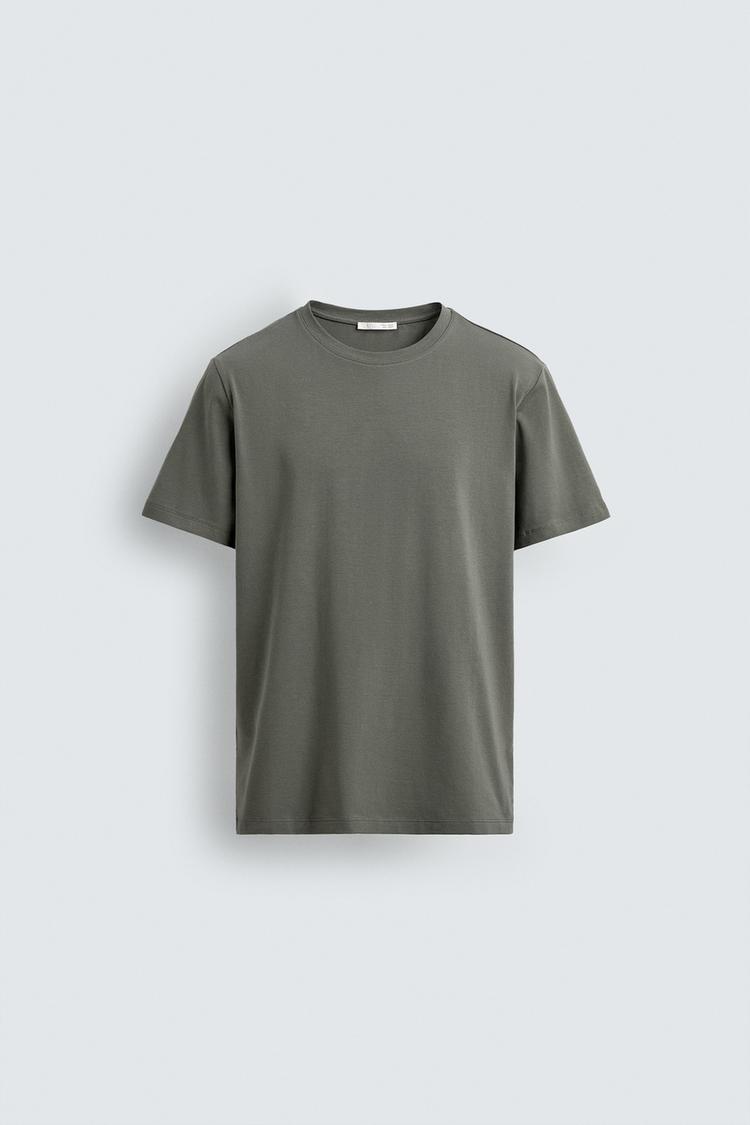 ZARA БАЗОВАЯ ПРИТАЛЕННАЯ ФУТБОЛКА SLIM FIT, ЗЕЛЕНОВАТЫЙ