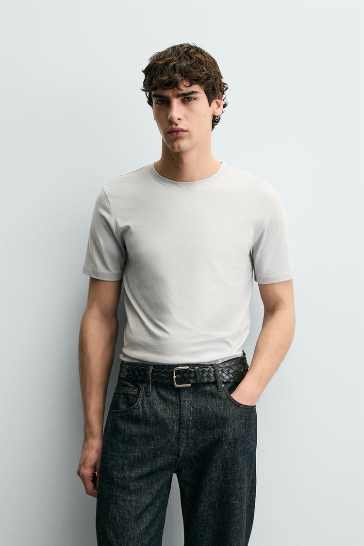 ZARA БАЗОВАЯ ПРИТАЛЕННАЯ ФУТБОЛКА SLIM FIT, ЖЕМЧУЖНО-СЕРЫЙ