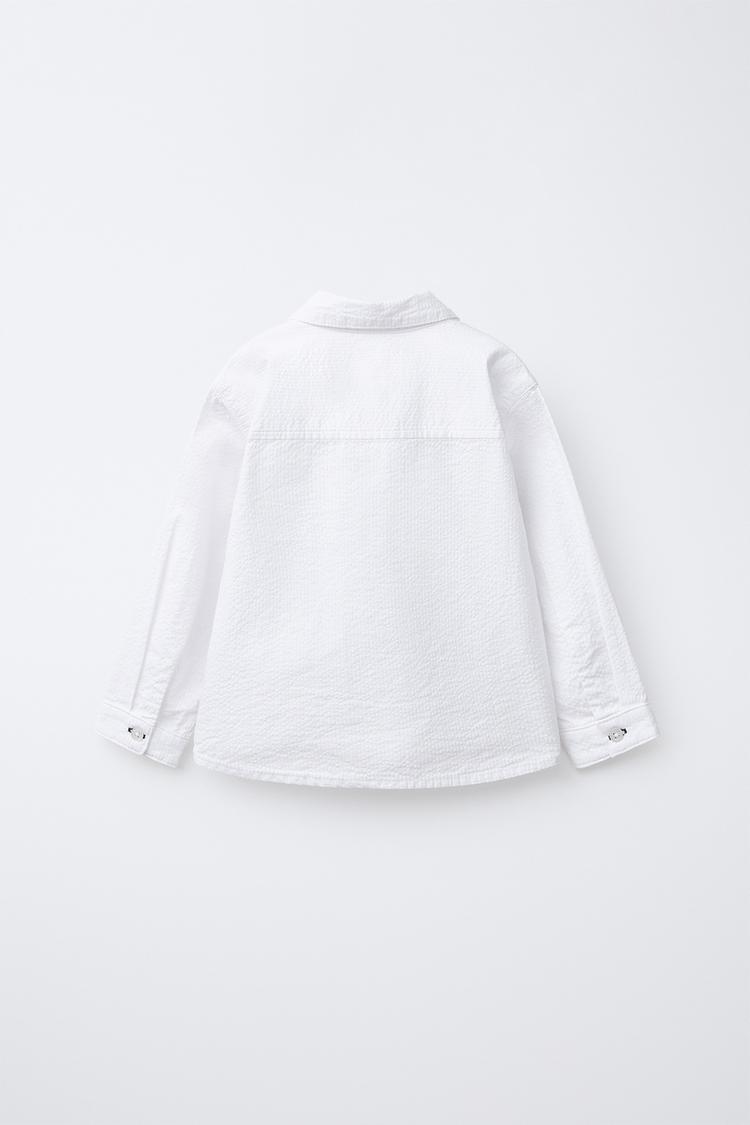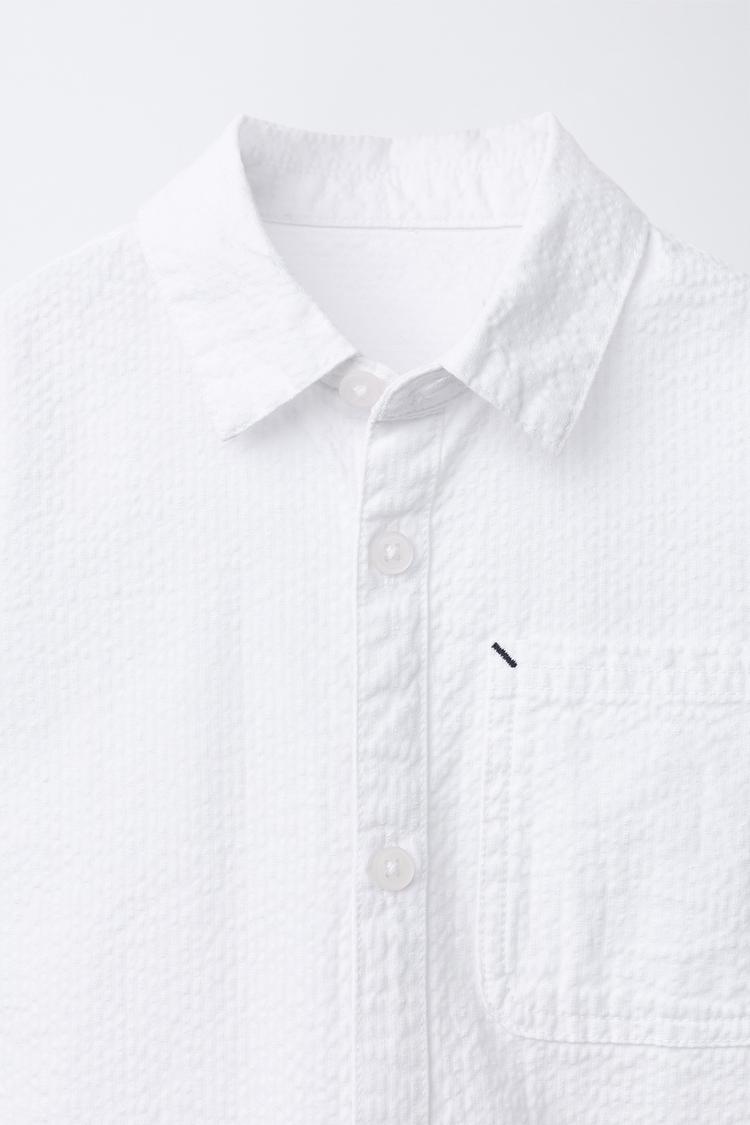 ZARA БАЗОВАЯ РУБАШКА ИЗ ЖАТОЙ ТКАНИ, БЕЛЫЙ