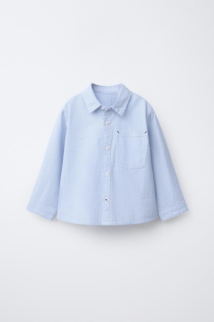 ZARA БАЗОВАЯ РУБАШКА ИЗ ЖАТОЙ ТКАНИ, СИНИЙ