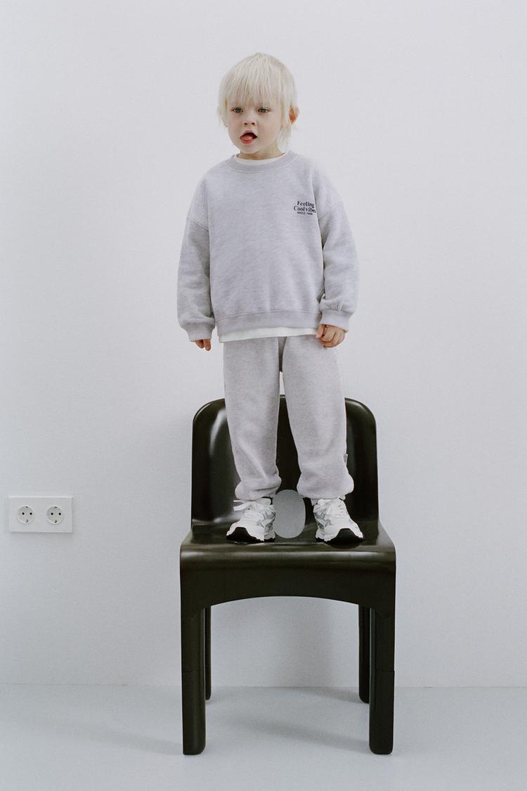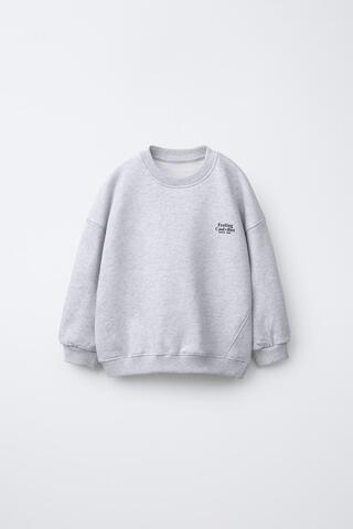 ZARA БАЗОВАЯ ТОЛСТОВКА С НАДПИСЬЮ, СЕРЫЙ МЕЛАНЖ