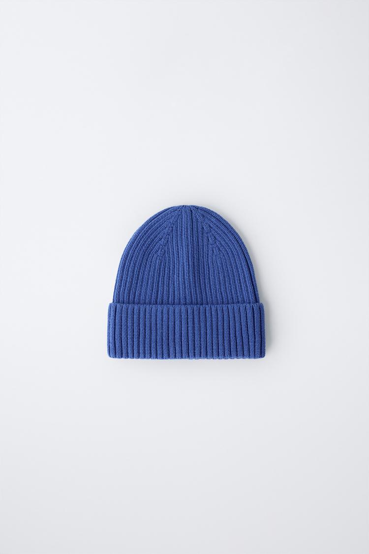 ZARA БАЗОВАЯ ВЯЗАНАЯ ШАПКА, СИНИЙ