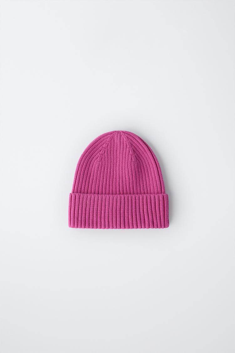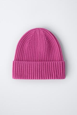 ZARA БАЗОВАЯ ВЯЗАНАЯ ШАПКА, ЦВЕТ ФУКСИИ
