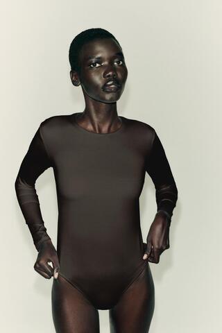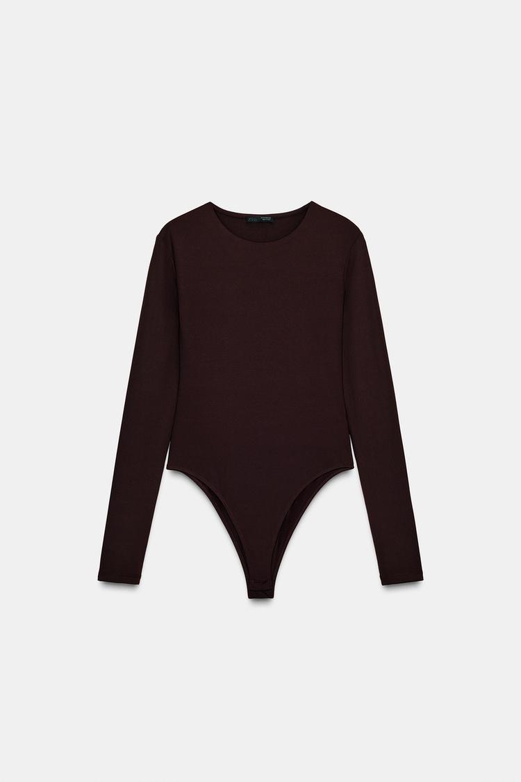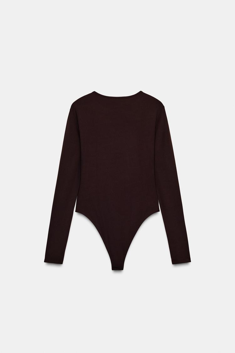 ZARA БАЗОВОЕ БОДИ ИЗ ПОЛИАМИДА, ТЕМНО-КОРИЧНЕВЫЙ