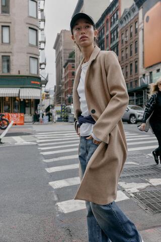 ZARA БАЗОВОЕ ПАЛЬТО ИЗ МЯГКОЙ ТКАНИ, МЯГКИЙ КАШТАНОВЫЙ