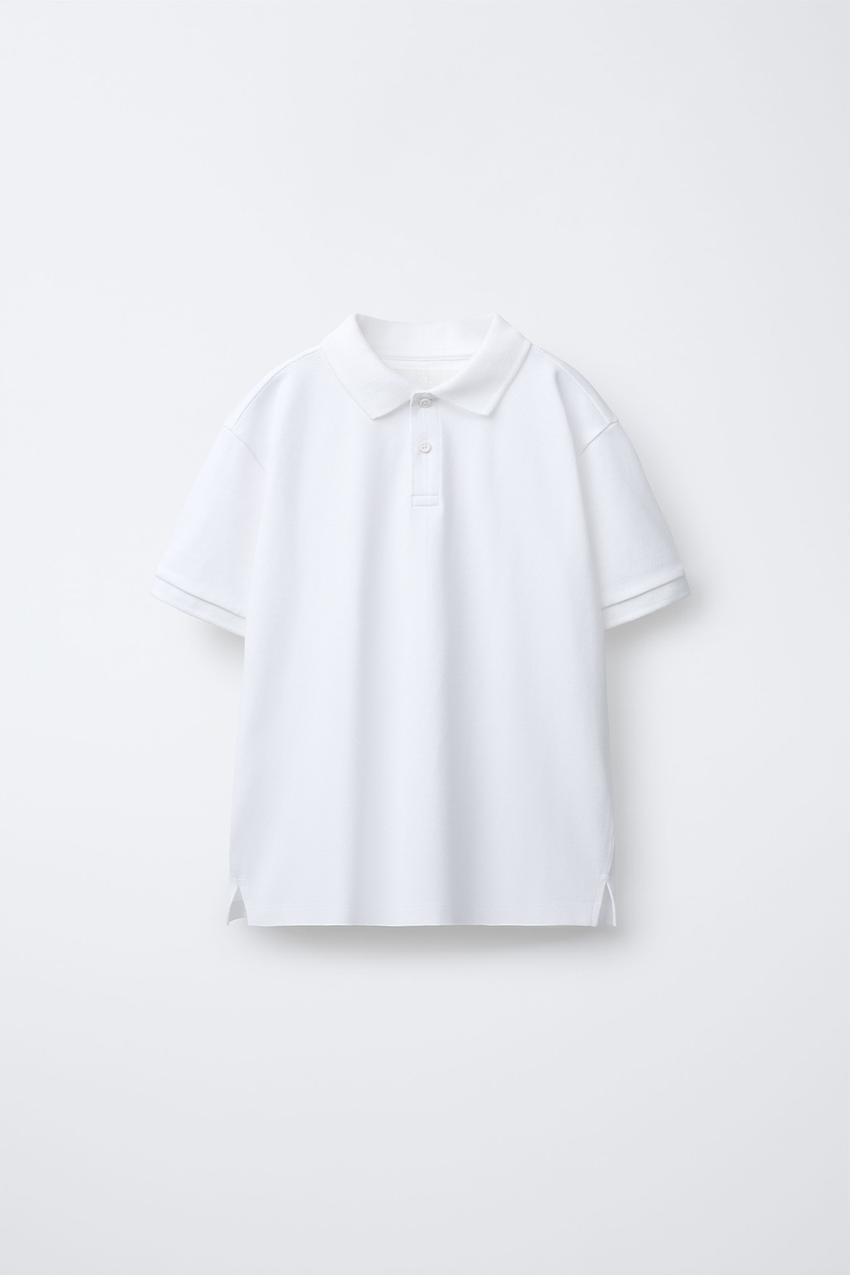 ZARA БАЗОВОЕ ПОЛО ИЗ ПИКЕ, БЕЛЫЙ