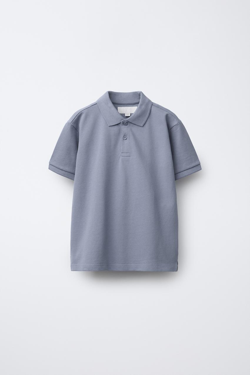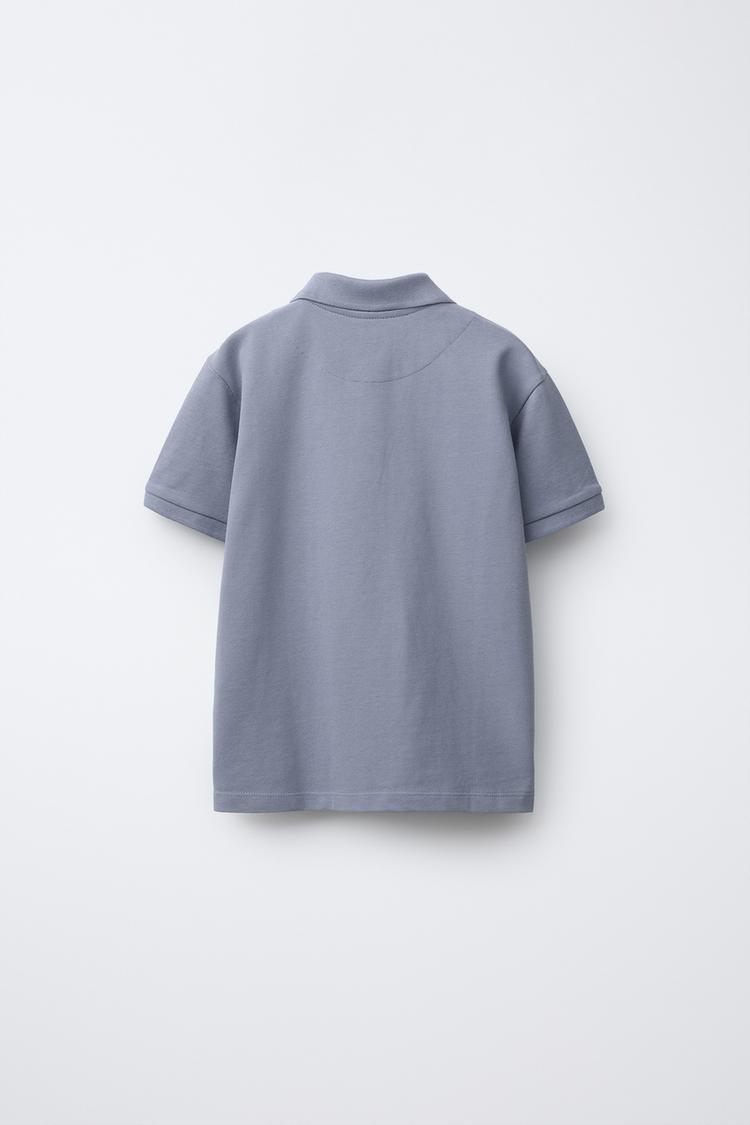 ZARA БАЗОВОЕ ПОЛО ИЗ ПИКЕ, СЕРО-СИНИЙ