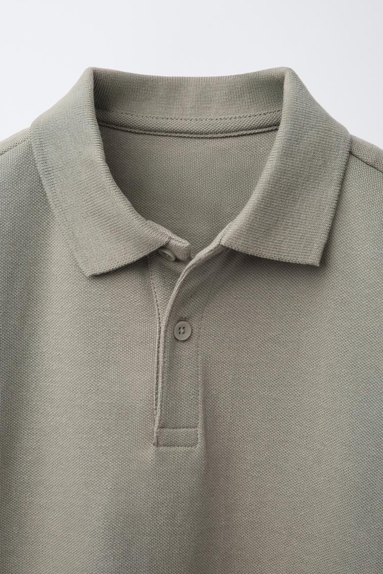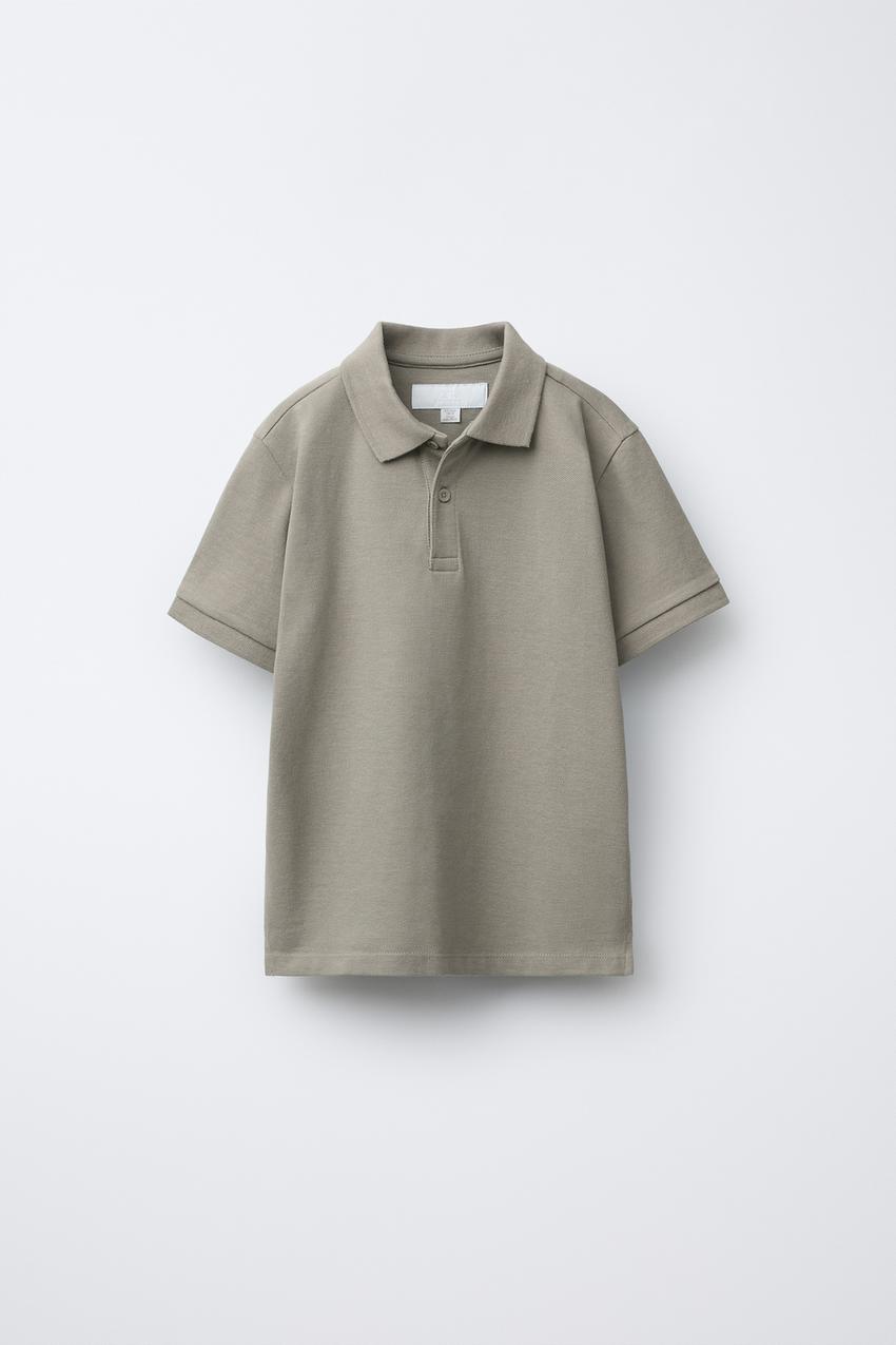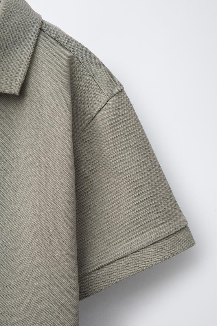 ZARA БАЗОВОЕ ПОЛО ИЗ ПИКЕ, СЕРОВАТО-КОРИЧНЕВЫЙ