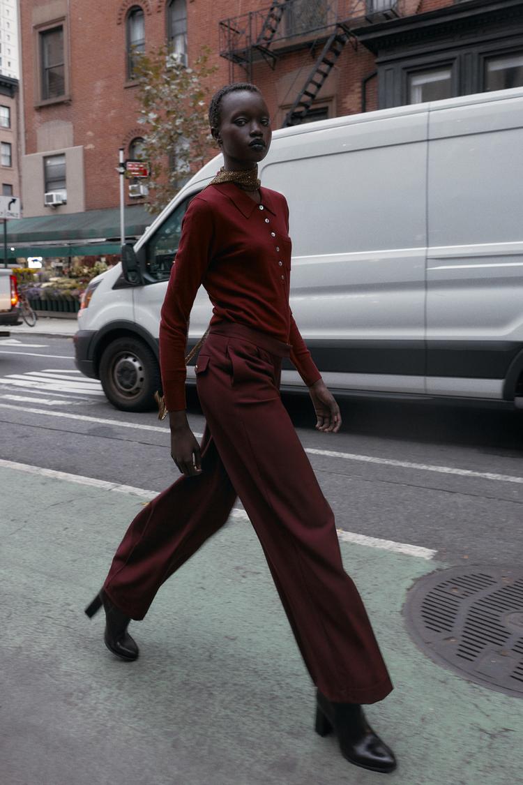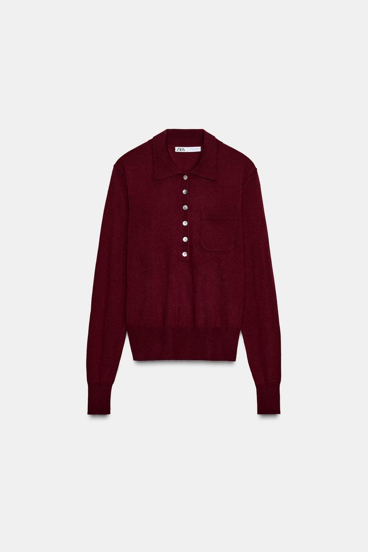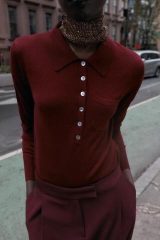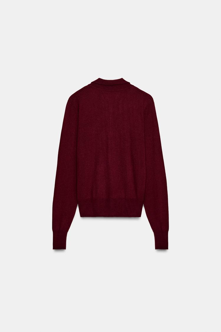 ZARA БАЗОВОЕ ПОЛО ИЗ СМЕСОВОЙ ШЕРСТИ, БУРГУНДИ