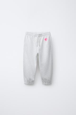 ZARA БАЗОВЫЕ БРЮКИ-ДЖОГГЕРЫ С СЕРДЕЧКОМ, СЕРЫЙ МЕЛАНЖ