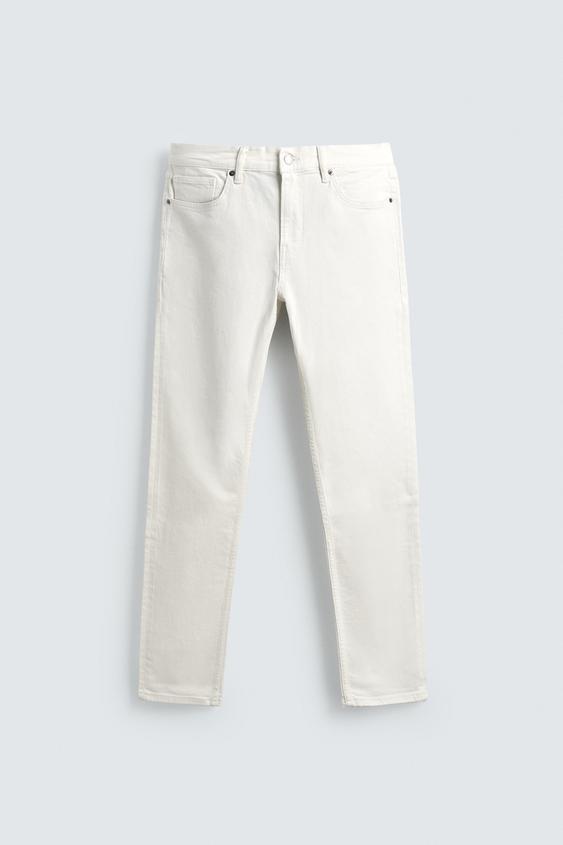 ZARA БАЗОВЫЕ ДЖИНСЫ SLIM FIT, ЖЕЛТОВАТО-БЕЛЫЙ