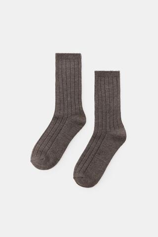 ZARA БАЗОВЫЕ НОСКИ В РУБЧИК, РЫЖЕВАТО-КОРИЧНЕВЫЙ