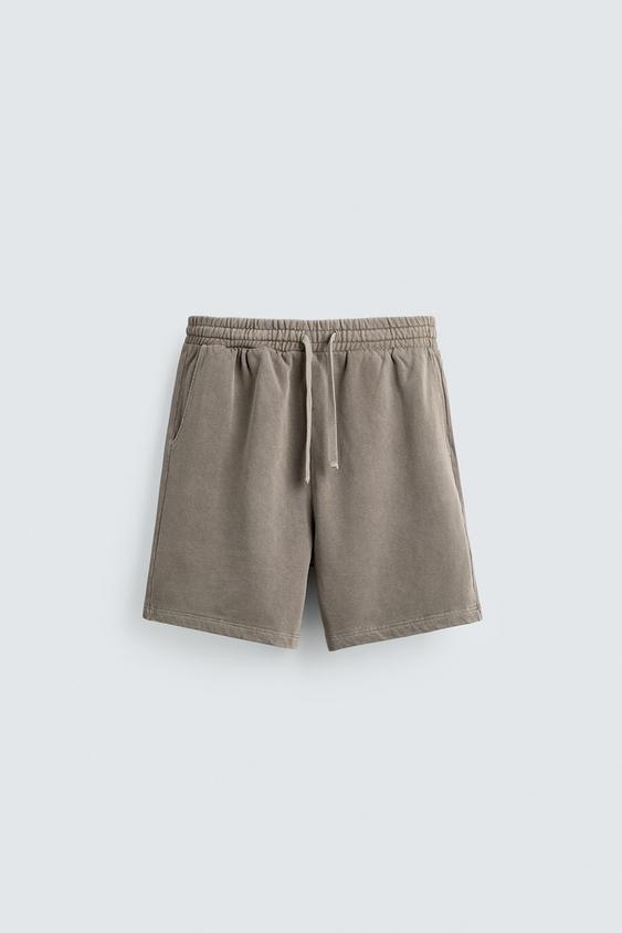 ZARA БАЗОВЫЕ ШОРТЫ-ДЖОГГЕРЫ С ЭФФЕКТОМ ПОТЕРТОСТИ, СЕРЫЙ
