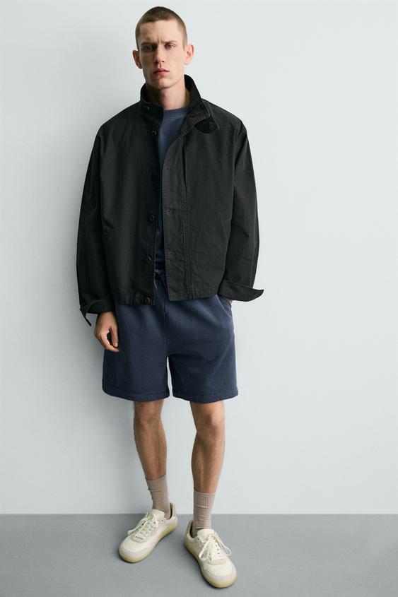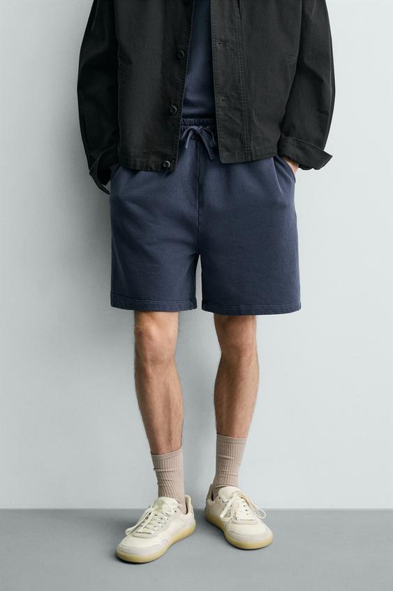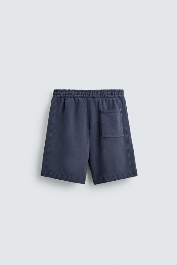 ZARA БАЗОВЫЕ ШОРТЫ-ДЖОГГЕРЫ С ЭФФЕКТОМ ПОТЕРТОСТИ, ЯРКО-СИНИЙ