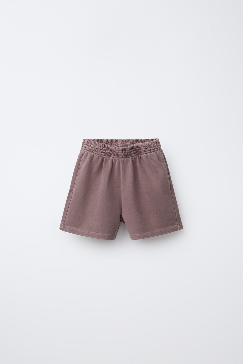 ZARA БАЗОВЫЕ ШОРТЫ ИЗ МЯГКОЙ ТКАНИ, ТЕМНО-КОРИЧНЕВЫЙ