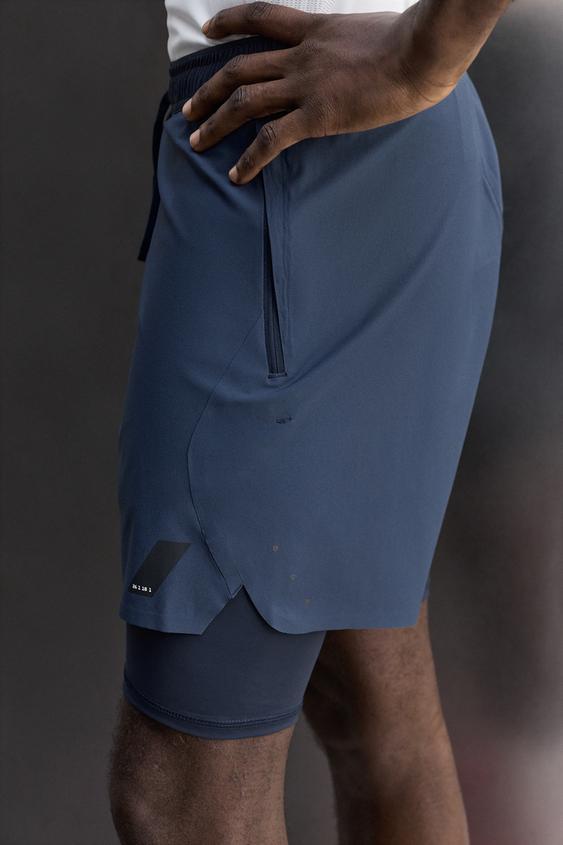 ZARA БАЗОВЫЕ СПОРТИВНЫЕ ШОРТЫ 2 В 1, МОРСКОЙ СИНИЙ