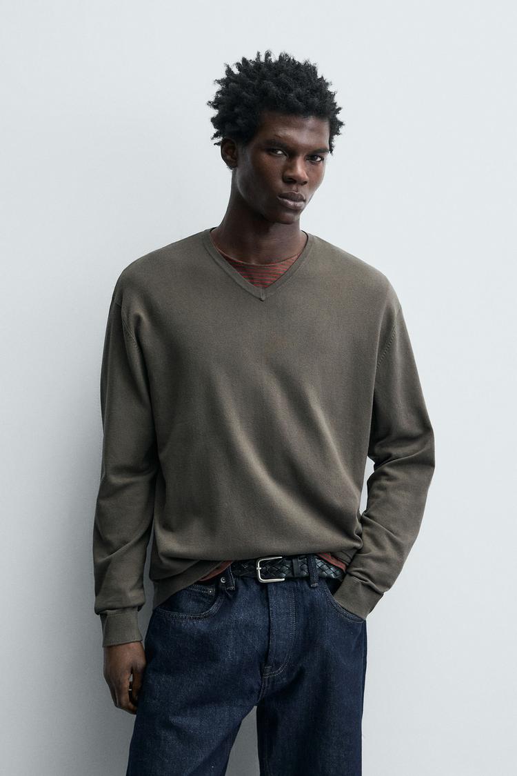ZARA БАЗОВЫЙ ДЖЕМПЕР С V-ОБРАЗНЫМ ВЫРЕЗОМ, КОРИЧНЕВЫЙ