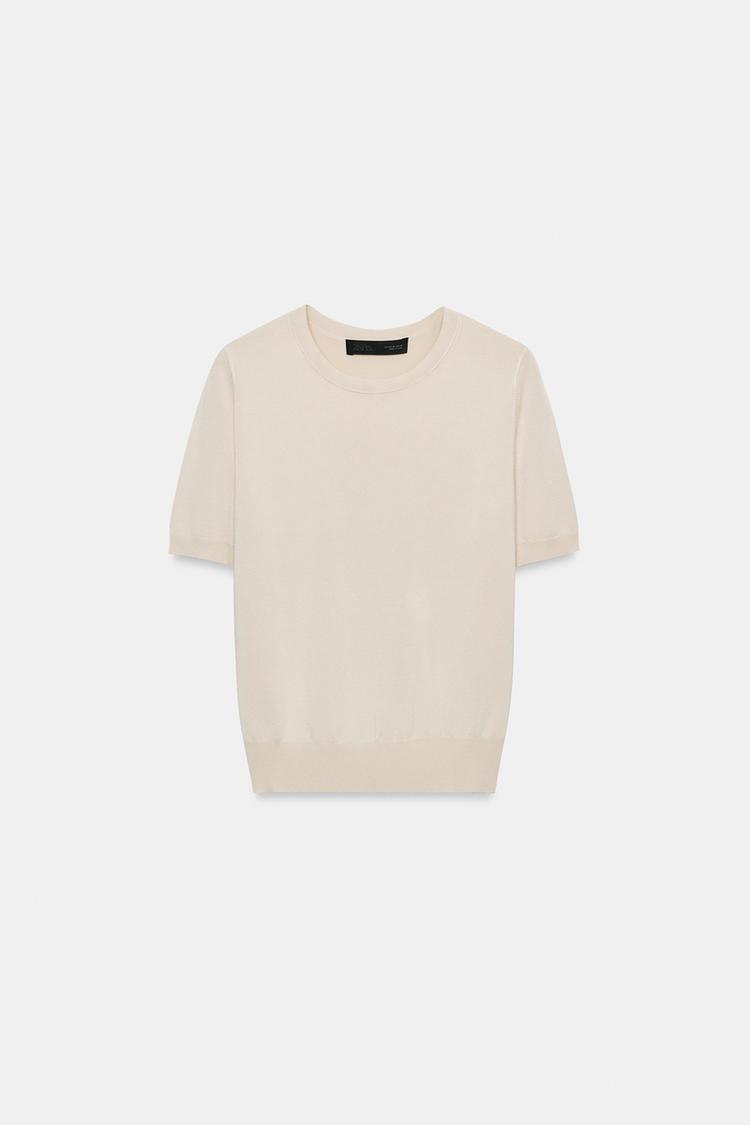 ZARA БАЗОВЫЙ ДЖЕРСИ С КОРОТКИМИ РУКАВАМИ, КАМЕННО-СЕРЫЙ