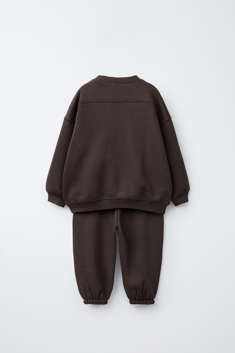 ZARA БАЗОВЫЙ КОМПЛЕКТ ТОЛСТОВКА И БРЮКИ-ДЖОГГЕРЫ С НАШИВКОЙ, ТЕМНО-БОРДОВЫЙ