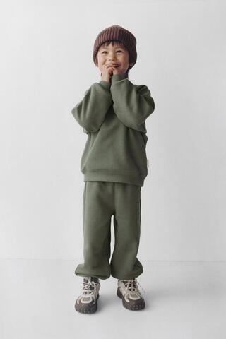 ZARA БАЗОВЫЙ КОМПЛЕКТ ТОЛСТОВКА И БРЮКИ-ДЖОГГЕРЫ С НАШИВКОЙ, ЗЕЛЕНЫЙ