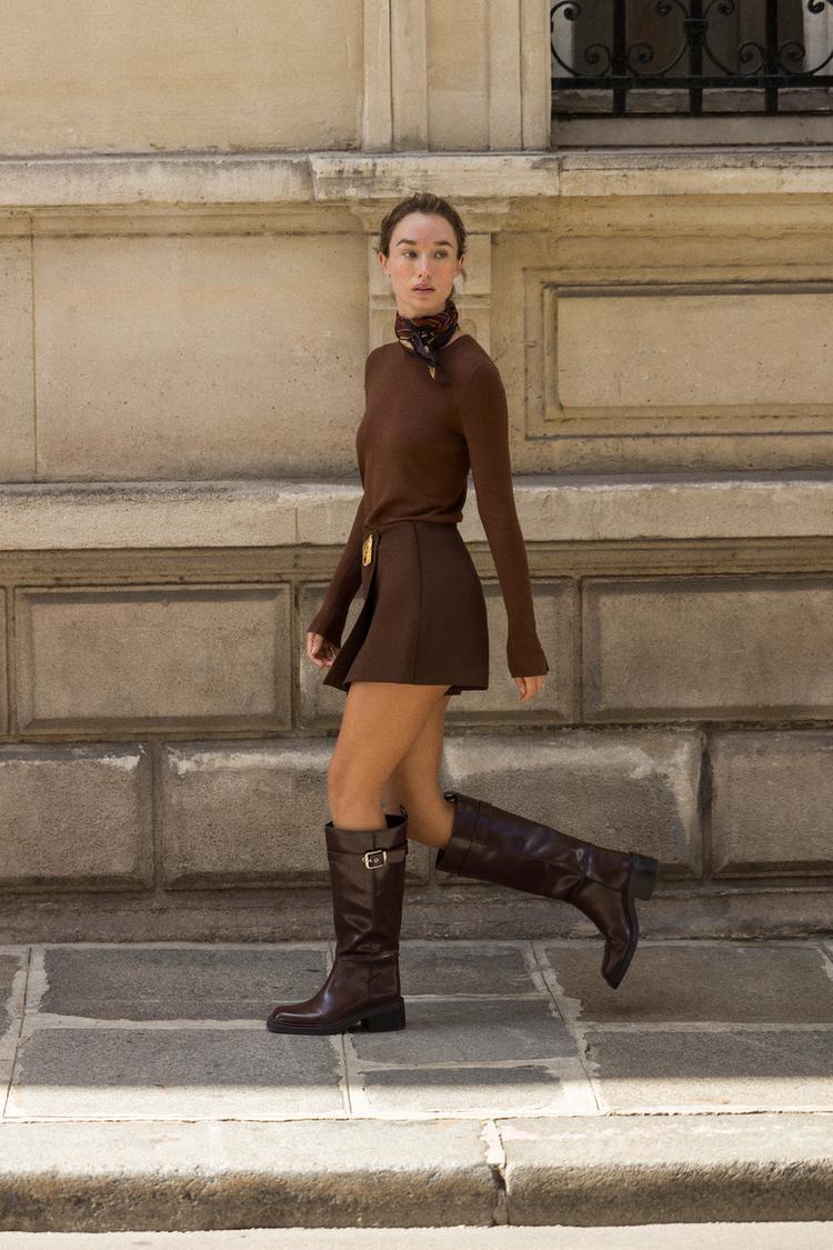 ZARA БАЗОВЫЙ ОДНОТОННЫЙ ДЖЕМПЕР, ШОКОЛАДНЫЙ