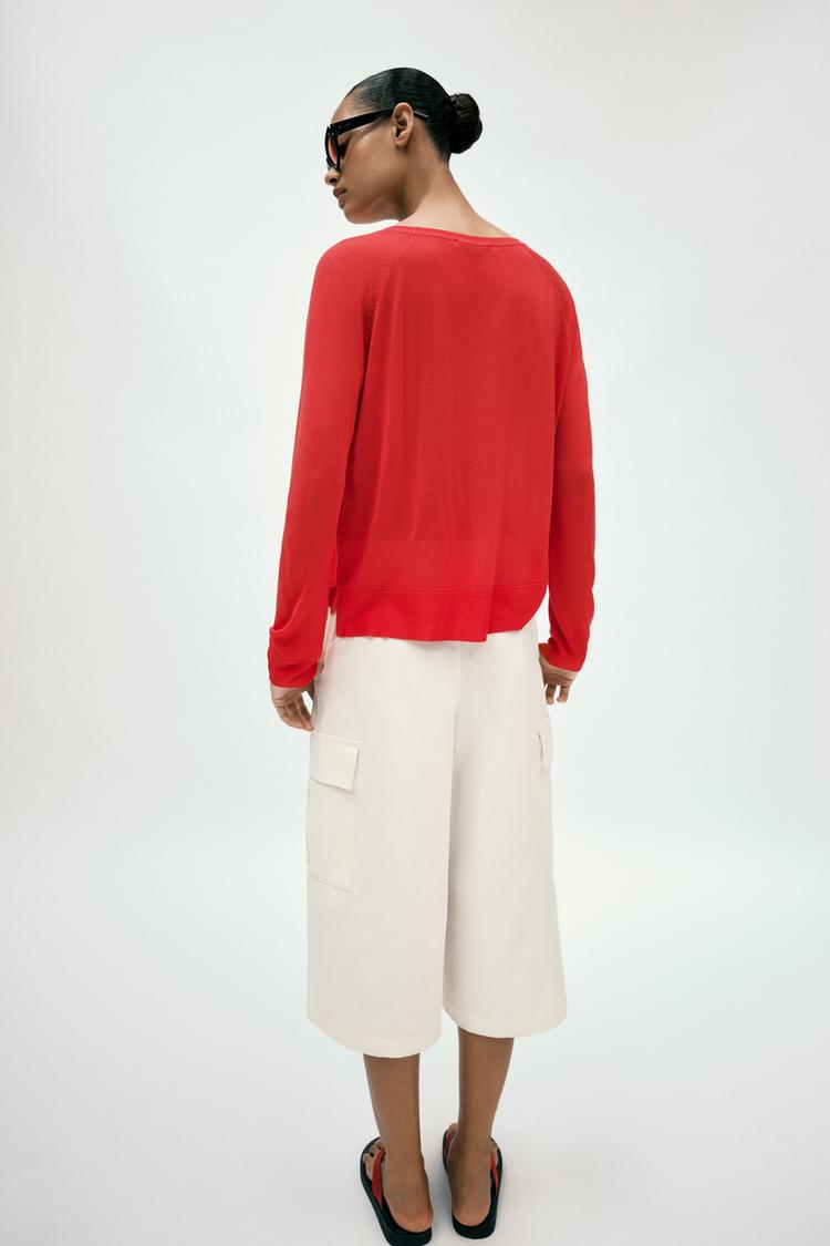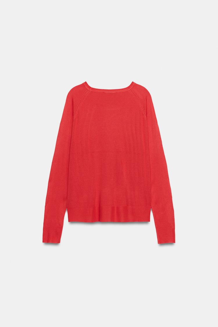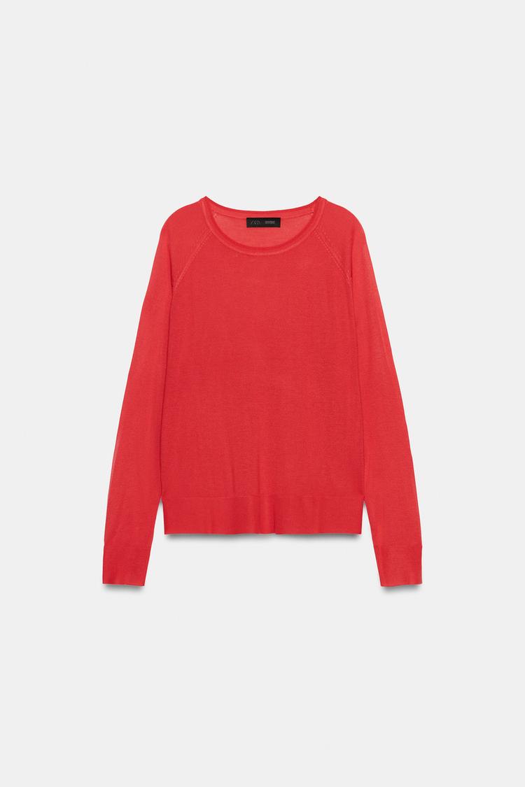 ZARA БАЗОВЫЙ СВИТЕР ИЗ ТОНКОГО ТРИКОТАЖА, КОРАЛЛОВО-КРАСНЫЙ