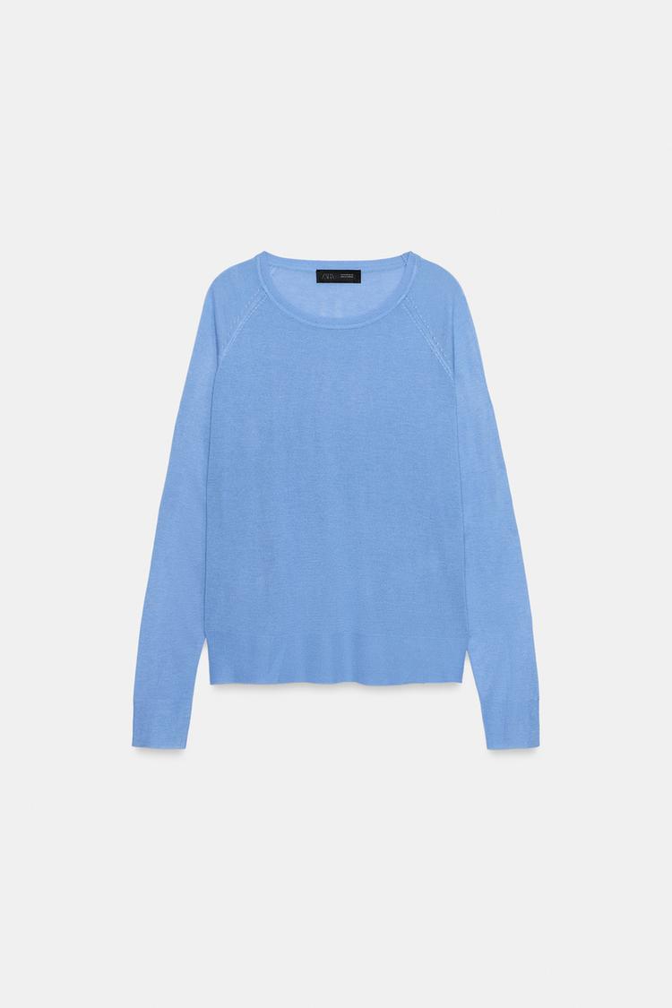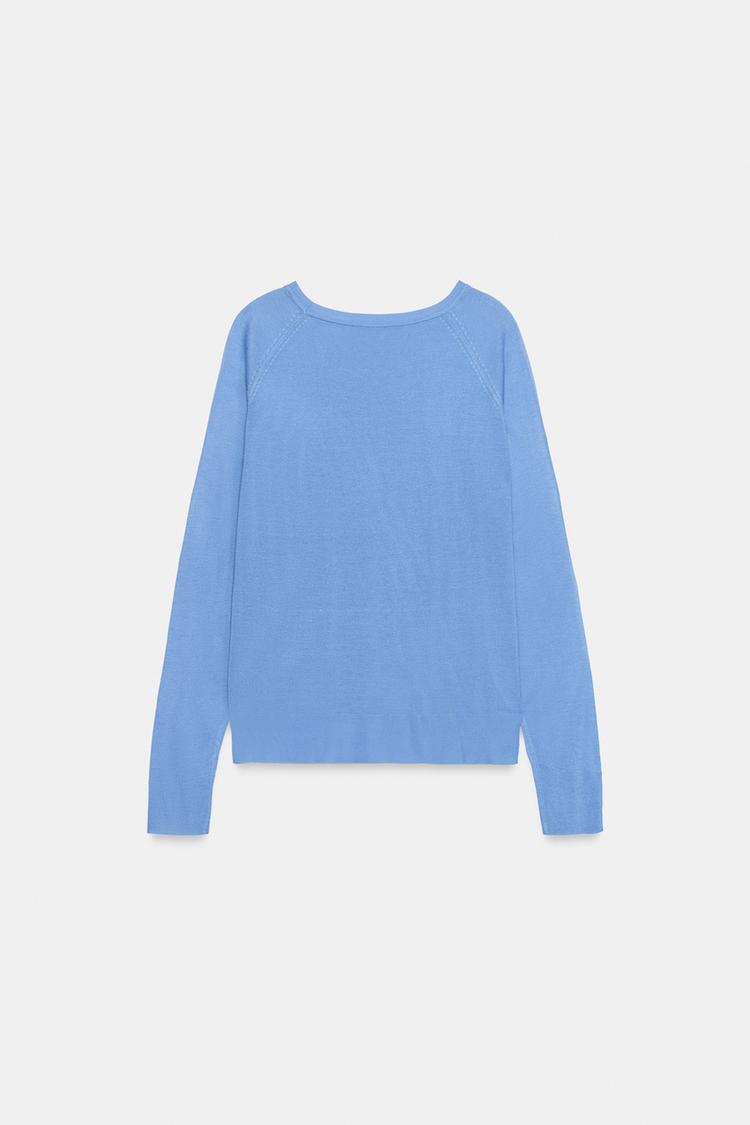 ZARA БАЗОВЫЙ СВИТЕР ИЗ ТОНКОГО ТРИКОТАЖА, СИНИЙ МЕЛАНЖ