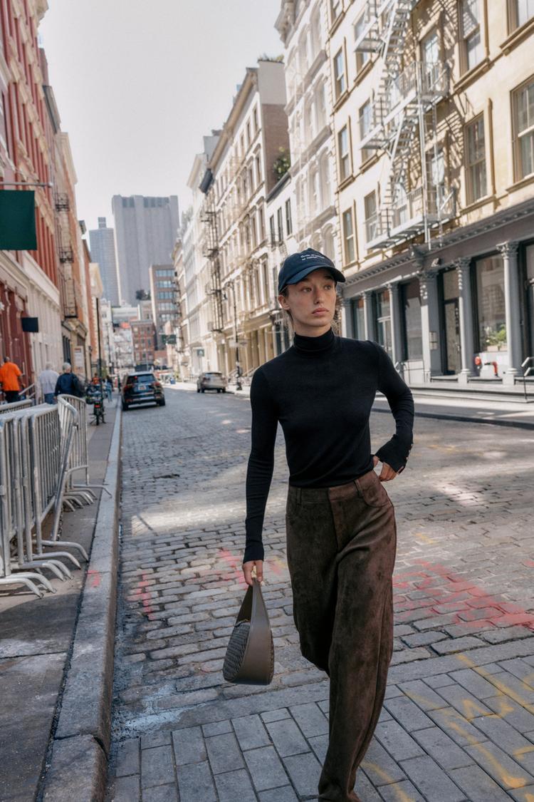 ZARA БАЗОВЫЙ ТРИКОТАЖНЫЙ ДЖЕМПЕР С ВЫСОКИМ ВОРОТНИКОМ, ЧЕРНЫЙ