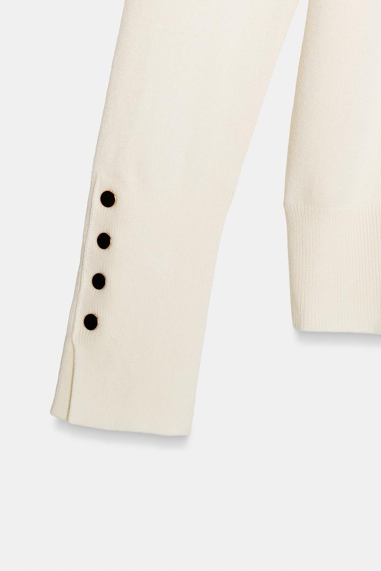 ZARA БАЗОВЫЙ ТРИКОТАЖНЫЙ ДЖЕМПЕР С ВЫСОКИМ ВОРОТНИКОМ, ЭКРЮ