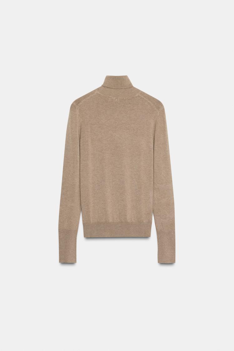 ZARA БАЗОВЫЙ ТРИКОТАЖНЫЙ ДЖЕМПЕР С ВЫСОКИМ ВОРОТНИКОМ, СЕРО-КОРИЧНЕВЫЙ МЕЛАНЖ