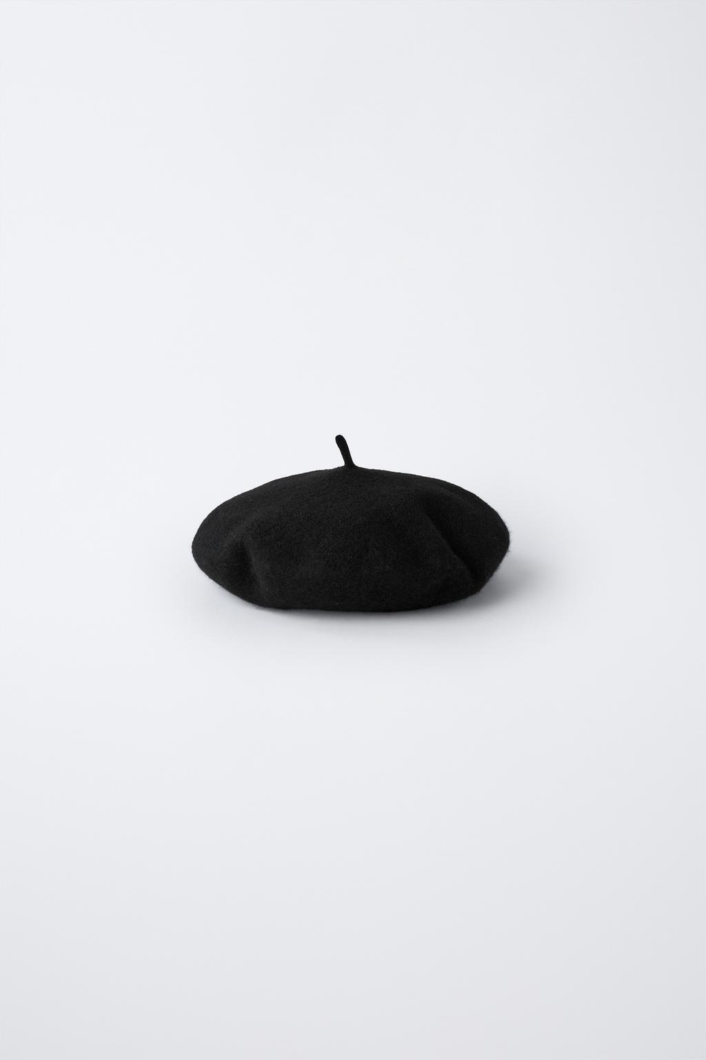 ZARA БЕРЕТ ИЗ 100% ШЕРСТИ, ЧЕРНЫЙ