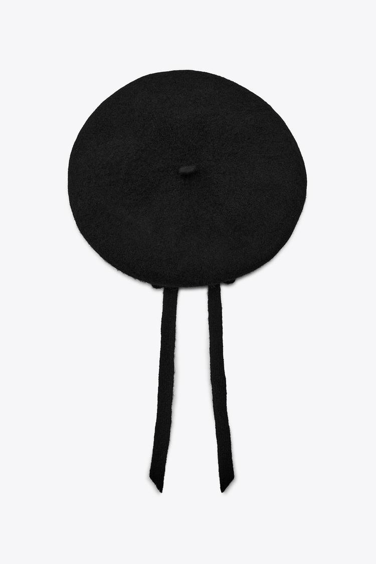 ZARA БЕРЕТ ИЗ 100% ШЕРСТИ С БАНТОМ, ЧЕРНЫЙ