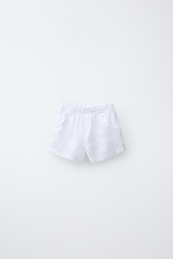 ZARA БЕРМУДЫ ИЗ 100% ЛЬНА, БЕЛЫЙ